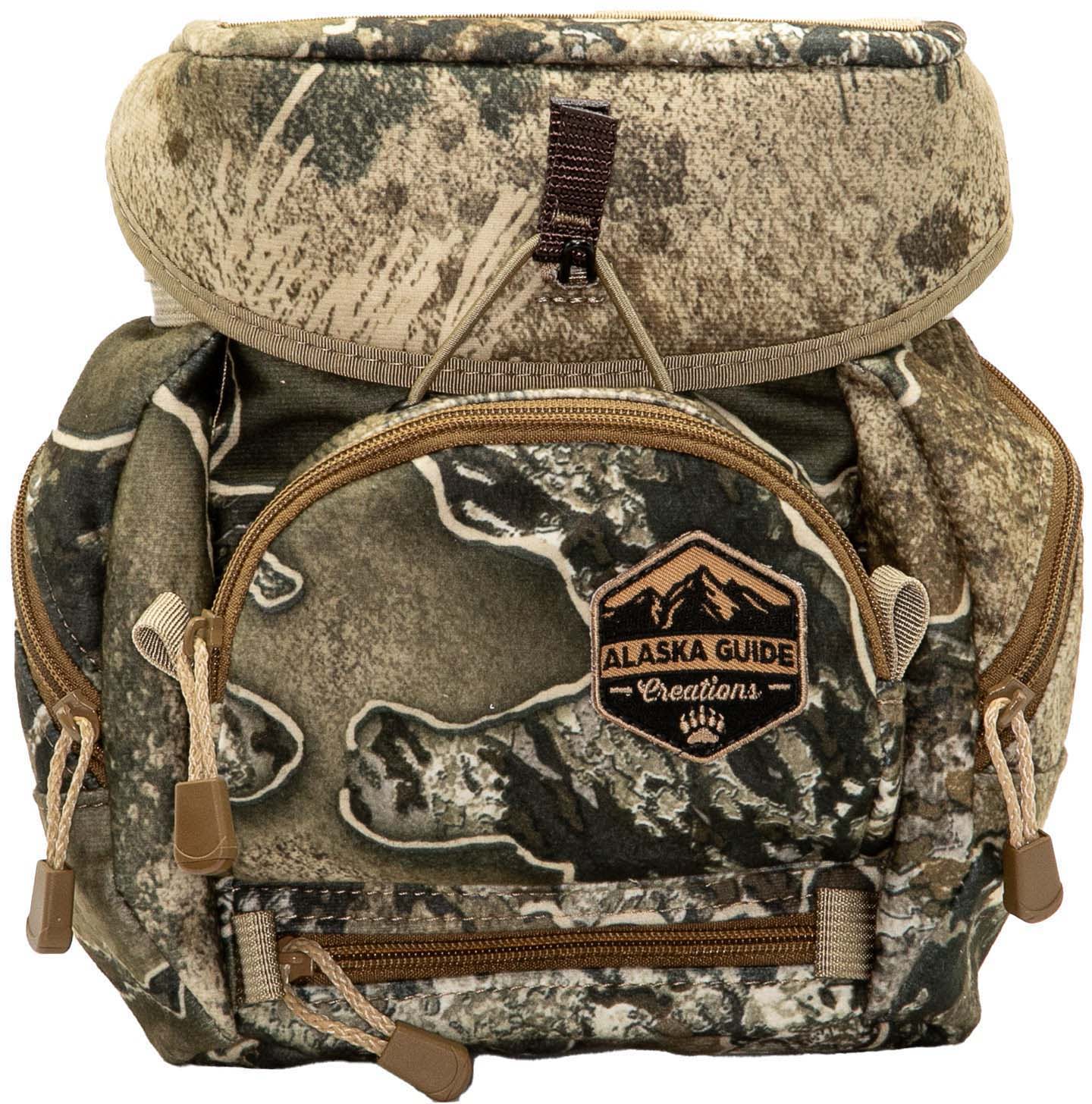 Harness, Binocular Tether System, and Auto-Locking Buckles are included with each pack Nothing beats the Original. The Alaska Classic offers the classic design features of the original binocular harness chest pack Jaret developed 40+ years ago with todays modern advancements in innovation and durability. These are our mid-size line and are meant to accommodate full-size binoculars up to around 50mm objective lenses. For example, most 1050 and 1250 binoculars would fit perfect in the regular harnesses. Main Compartment measurements are approximately 6.75-inch tall x 6.5-inch wide x 3.5 inches deep. Front Compartment measurements are approximately 4.5-inch tall x 6-inch wide x 1.5 inches deep. Side Compartment measurements are approximately 2.5-inch wide x 1 inch deep. Rear Compartment measurements are 7-inch tall x 6.5 inches wide flat The M.A.X. pocket option adds one additional pocket at the bottom of the pack that is about 1 inch tall and is the same depth and width as the main compartment. This pocket is perfect for storing a light pair of gloves, headlamp, Tyto Knife and blades, or any other small necessities. Perfect for: Swarovski, Leica, Zeiss, Vortex, 842, 1042, 1050, 1250, 1550 and Range Binoculars. Specifications for Alaska Guide Creations Alaska Classic Gen L Binocular Harness: Manufacturer: Alaska Guide Creations Included Accessories: w/ Max Pocket Fabric/Material: Ripstop Attachment Type: Harness Length: 6.5 in Gender: Unisex Package Type: Other Width: 6.5 in Height: 6.75 in Depth/Thickness: 3 in Condition: New Features of Alaska Guide Creations Alaska Classic Gen L Binocular Harness Silent, one hand operation Adjustable lid with elastic sleeves for phone etc Zippered side pockets Zippered front pocket for rangefinder/accessory storage Flat, zippered rear pocket MAX (basement) zippered pocket for maximum storage. Package Contents: Alaska Guide Creations Alaska Classic Gen L Binocular Harness Harness Pro Tethers Locking Buckles