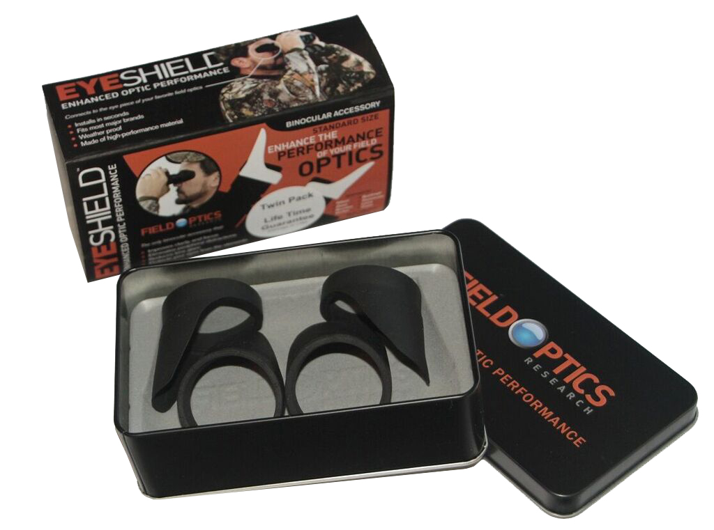 4 Eye shields for standard size binoculars Specifications for Field Optics Research Eye Shield Twin Pack: Manufacturer: Field Optics Research Color: Black Additional Features: 2 pair Features of Field Optics Research Eye Shield Twin Pack Blocks excess light, wind, dust, snow Package Contents: Field Optics Research Eye Shield Twin Pack