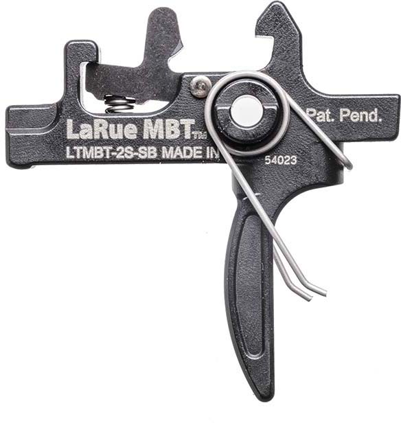 It’s a glass-smooth, hyper-consistent trigger that will satisfy even the most scrupulous competition shooter, but also be overly rugged for the battlefield. The MBT-2S-SB breaks crisply at 4.5 lbs (2.5 lb first stage, 2 lb second stage) and has a smooth and positive reset. The LaRue MBT-2S-SB is purposefully designed and manufactured to render the greatest benefits from our legendary line of accurate rifles. The MBT-2S-SB can also replace the stock trigger on any mil-spec AR10/AR15 lower receiver. Each trigger comes with an additional “heavy” trigger spring that increases the pull weight to 6 lbs. Specifications for LaRue Tactical MBT-2S Straight Bow Trigger: Manufacturer: LaRue Tactical Color: Black Trigger Shape: Straight Trigger Material: S7 Tool Steel Trigger Pull Weight: 4.5 lb Trigger Pin Size: Mil-Spec Hand: Ambidextrous Gun Make: AR Platform Gun Model: AR-10, AR-15 Gun Type: Rifle Package Contents: LaRue Tactical MBT-2S Straight Bow Trigger