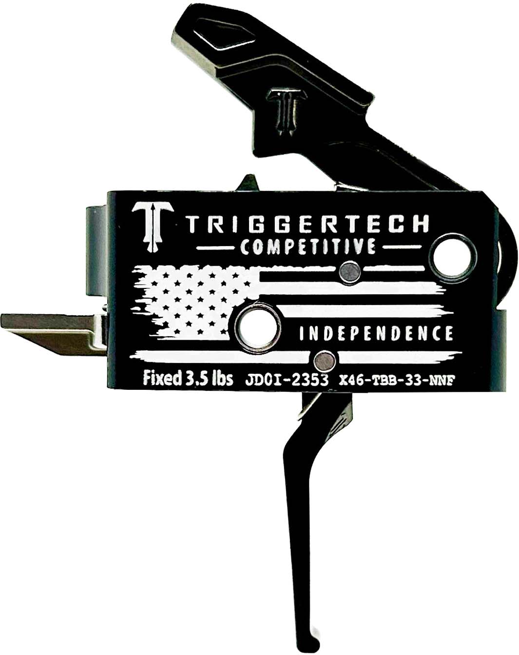 Featuring Frictionless Release Technology, this drop-in AR trigger has a short, two-stage action, designed to feel like a 1911 trigger, that provides a true zero-creep break, extremely short overtravel, a sub 0.030 tactical reset and offers outstanding reliability, even in the harshest environments. Utilizing CLKR Technology, the pull weight is quickly and confidently be adjusted in 2oz increments from a set screw with the trigger installed. Due to there being truly zero creep, most shooters report the pull weights feeling ~0.5lbs lighter than a friction based trigger of the same measured pull weight. This trigger bears the adaptable name because changing its pull weight does not affect hammer force so you get dependable primer strikes at every weight. Frictionless Release Technology, along with hardened 440C stainless steel internal components ensure corrosion resistance and an extended service life. As Frictionless Release Technology does not rely on coating, polishing or lubricating the key engagement surfaces, trigger pulls will be more consistent from shot to shot and after thousands of shots than you ever thought possible. All pull weights and measurements are approximate. Specifications for Triggertech AR15 Competitive Independence Day Rifle Trigger: Manufacturer: Triggertech Color: Black Fabric/Material: 440C Stainless Steel Trigger Shape: Flat Trigger Pull Weight: 3.5 lb Gun Make: AR Platform Gun Model: AR-15 Features of Triggertech AR15 Competitive Independence Day Rifle Trigger White laser engraving with an Independence Day theme Package Contents: Triggertech AR15 Competitive Independence Day Rifle Trigger